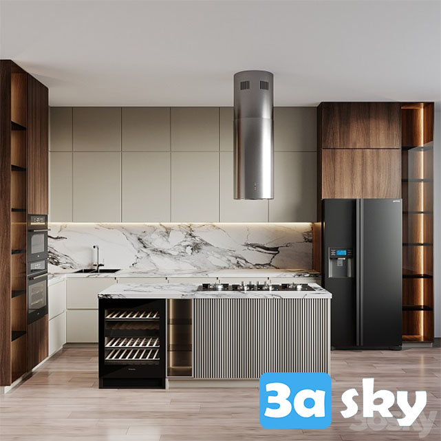 This 3DS MAX file features a modern kitchen design, ideal for interior design projects and architectural visualization. The file includes detailed elements such as cabinets, countertops, and appliances, providing a realistic representation of a contemporary kitchen space.