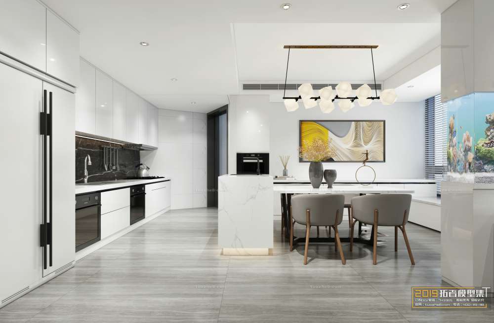 This 3D scene showcases a modern kitchen design created using 3DS MAX. The scene features high-quality textures and detailed elements, making it ideal for interior design projects. Explore the intricate details of this kitchen design and get inspired for your next project.