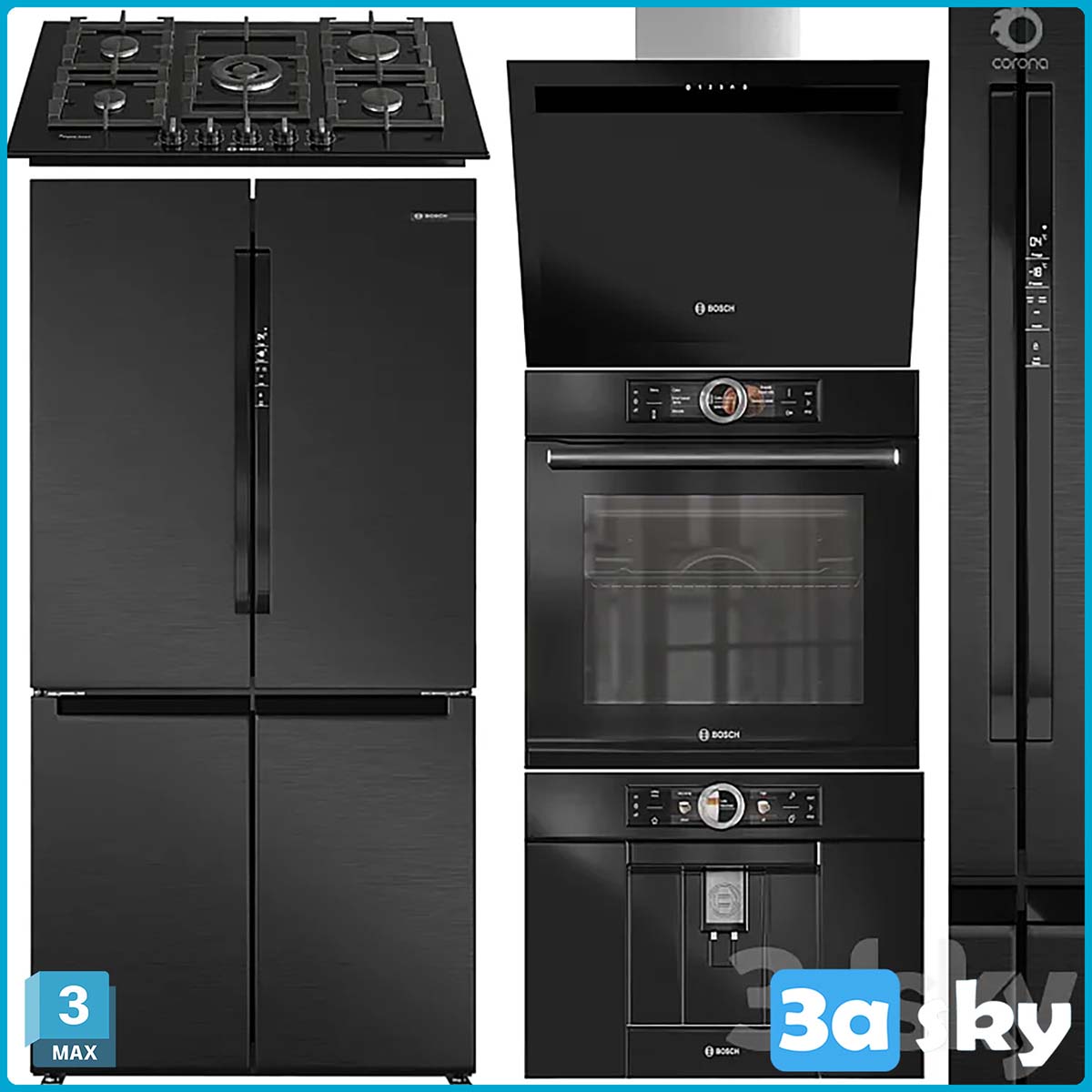 This 3D model showcases a modern kitchen design by Bosch. The layout features sleek cabinetry, modern appliances, and a functional design. Explore the details of this kitchen to get inspiration for your own home design projects.