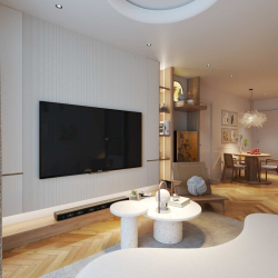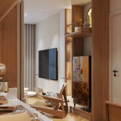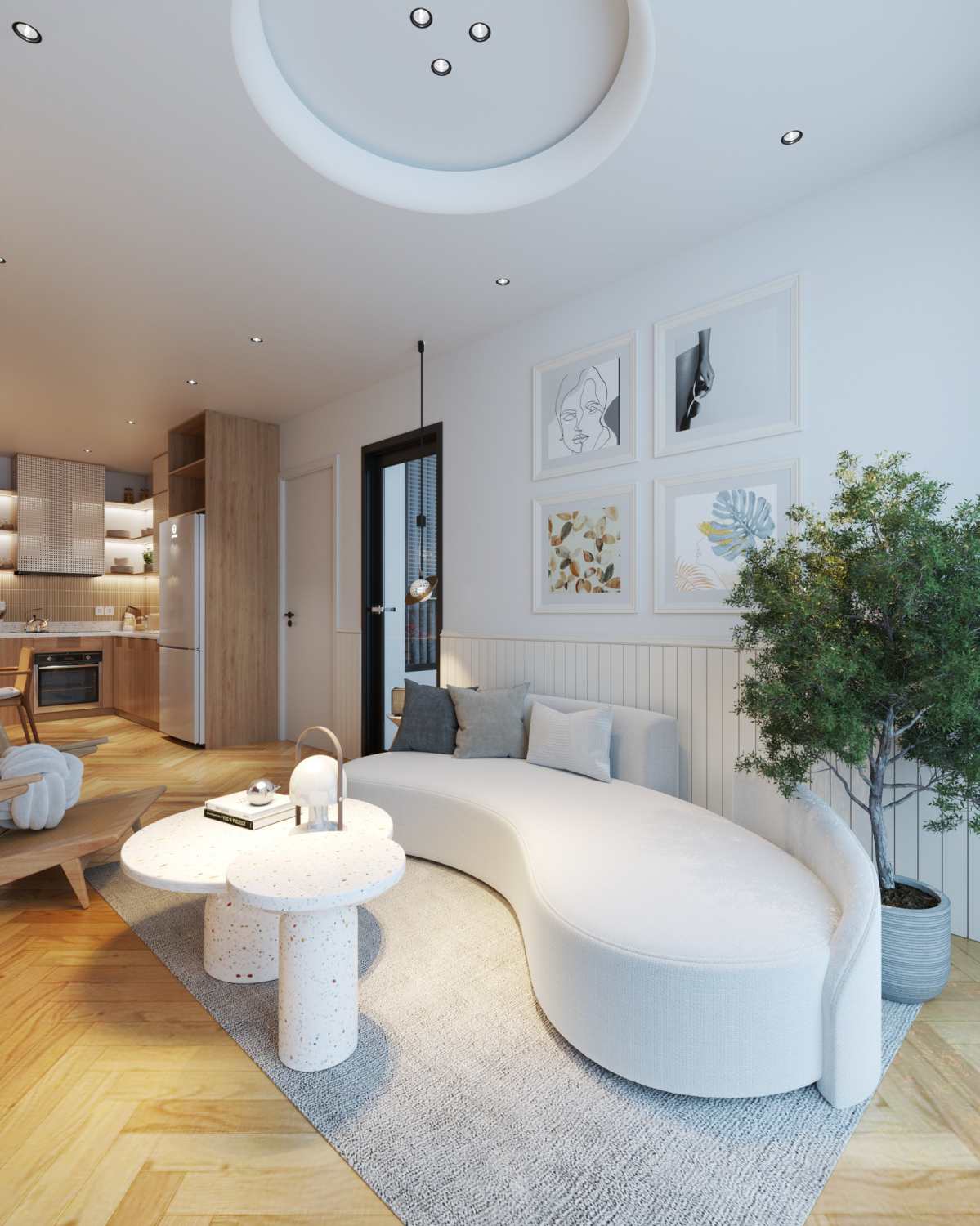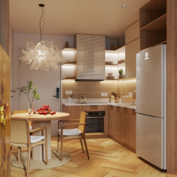 This 3D scene preview features a modern kitchen design created by Le Manh Tien. The kitchen layout is stylish and functional, showcasing a contemporary approach to interior design. Explore the details of this kitchen scene for inspiration and ideas for your own space.