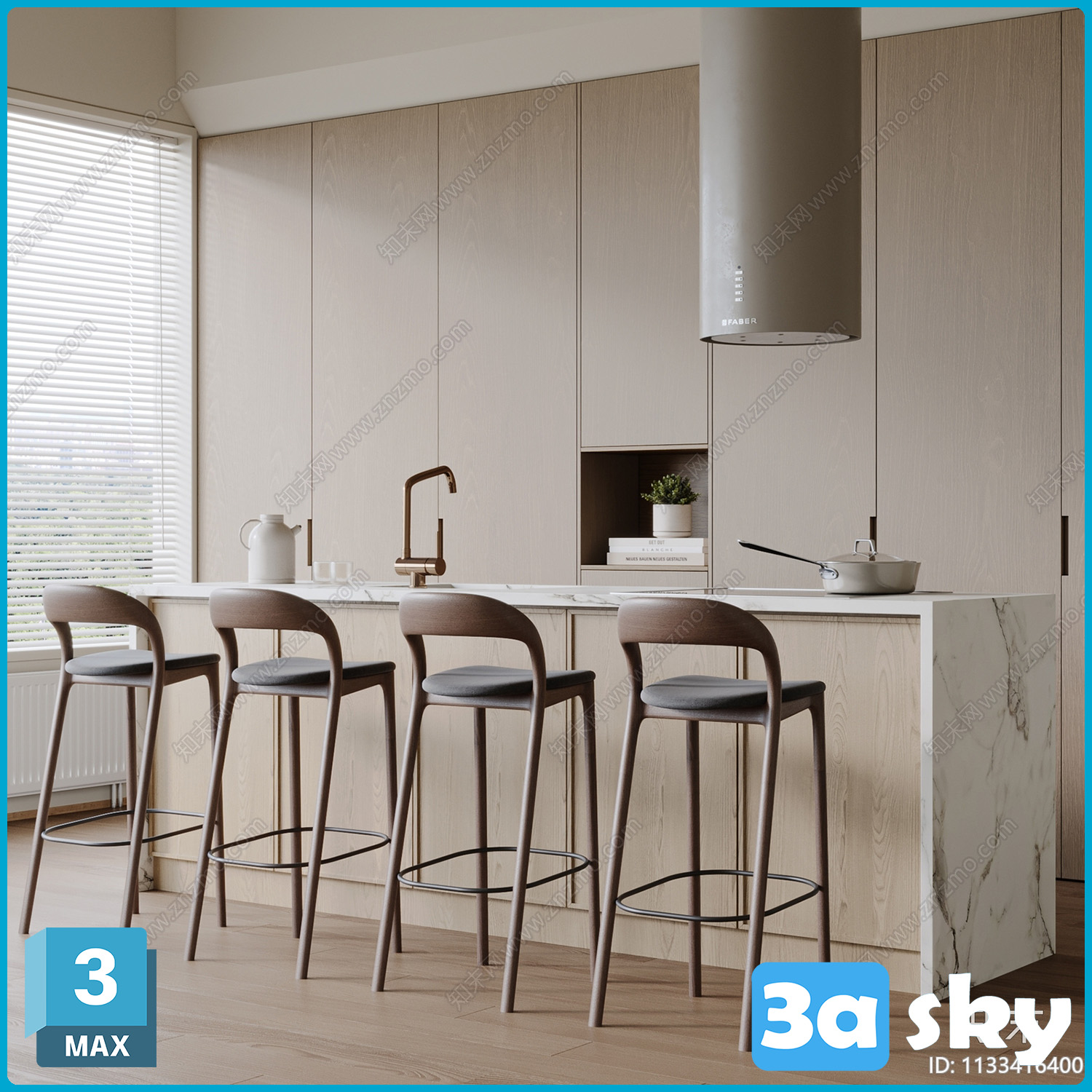 This 3D model showcases a modern kitchen design created in 3DS MAX. The design features sleek and contemporary elements, including kitchen appliances and a stylish layout. Explore this detailed preview to get inspired for your own interior design projects.