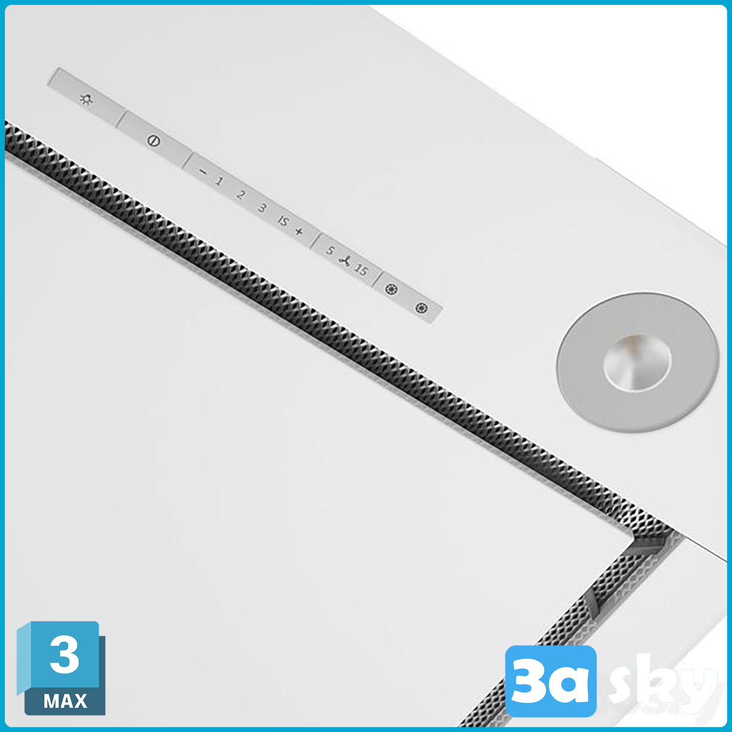 This 3D model showcases a modern kitchen design with a focus on the elegant Miele Mortise Ceiling Hood. The design features a sleek and contemporary aesthetic, perfect for a stylish home interior. The Miele Mortise Ceiling Hood adds a touch of sophistication and functionality to the kitchen space. Explore this 3D model to get inspired for your own interior design projects.
