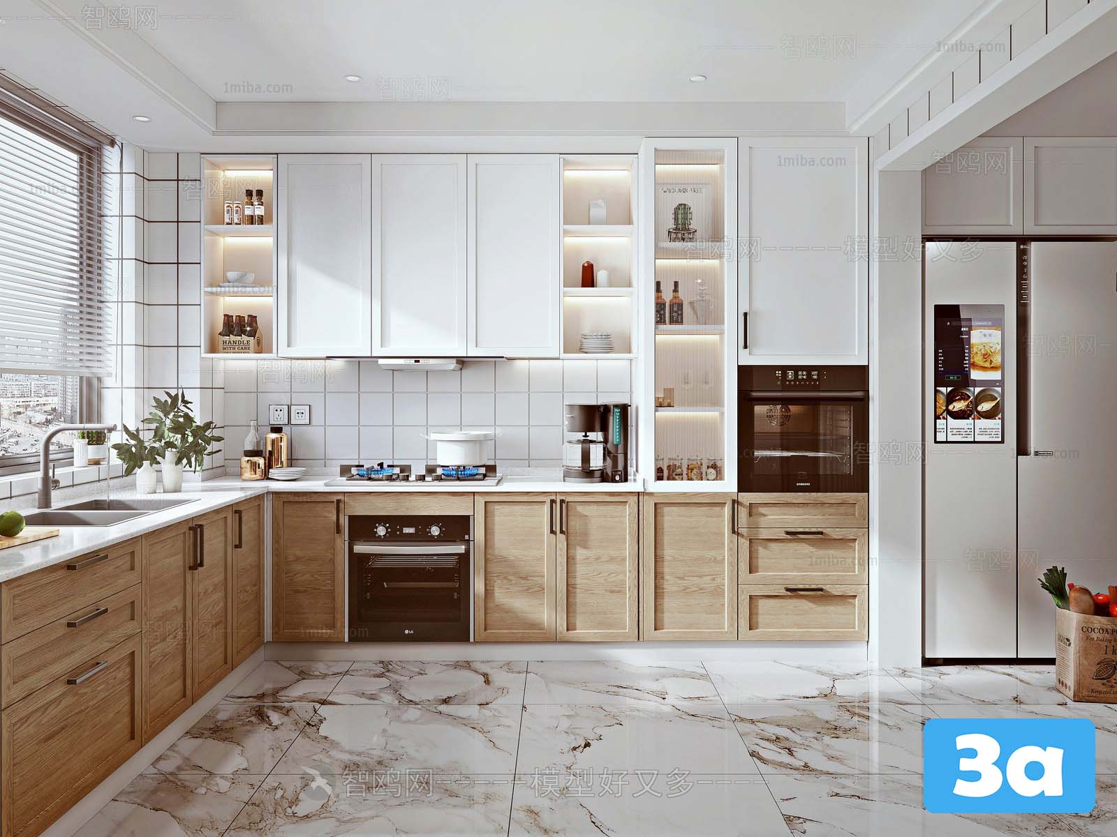 This 3D scene showcases a modern kitchen design with contemporary elements. The layout features sleek cabinets, a stylish island, and modern appliances. Explore the details of this kitchen model in SketchUp format.