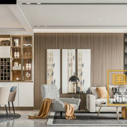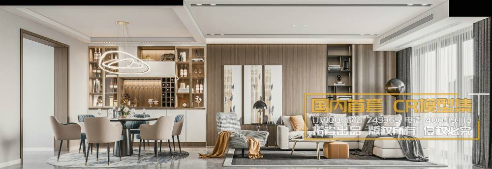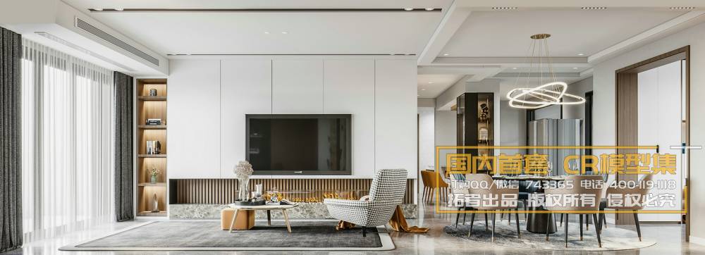 This 3D scene features a modern living room designed in a sleek and contemporary style. The room is furnished with stylish furniture and decor, creating a sophisticated and inviting space. Explore the details of this interior design to gather inspiration for your own projects.