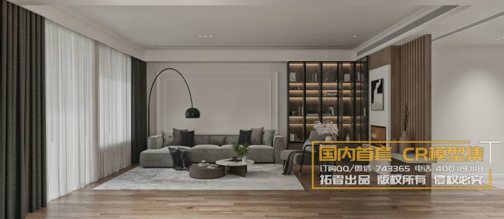 This 3D scene features a modern living room designed in a contemporary style. The room is elegantly furnished with modern furniture and decor, creating a stylish and inviting space. Explore the details of the interior design and get inspired for your own home decor projects.