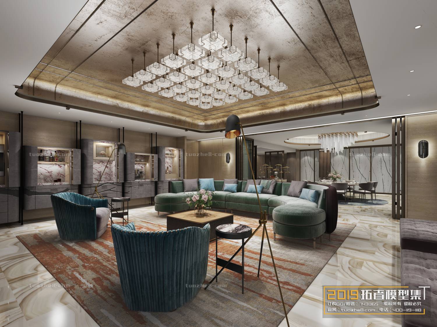 This 3D scene features a modern living room designed in a contemporary style. The room is furnished with stylish furniture and decor elements, creating a cozy and elegant space. Explore the interior design details and get inspired for your own home decor projects.