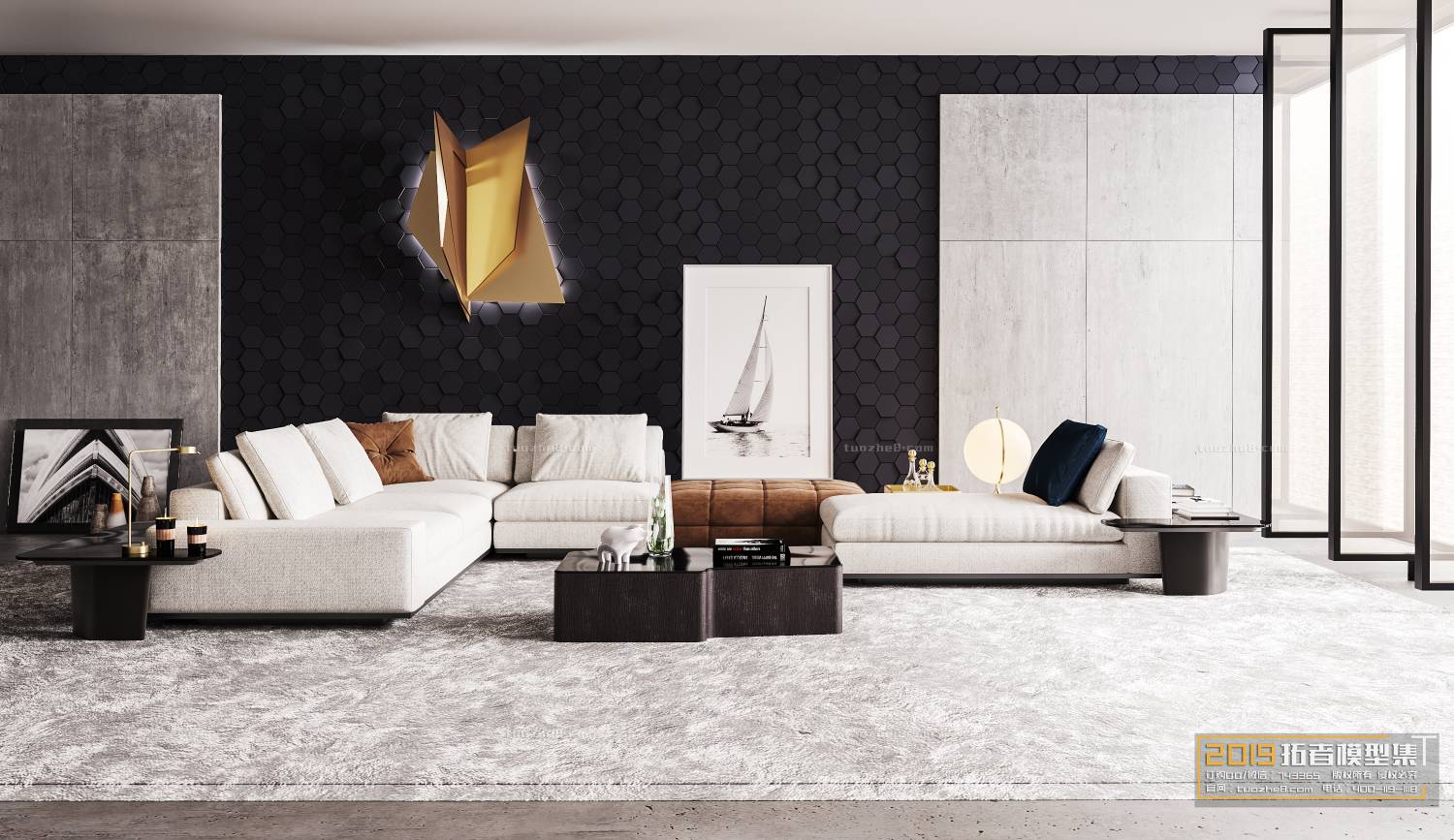 This 3D scene features a modern living room designed in a contemporary style. The room is elegantly furnished with sleek furniture and stylish decor elements. Experience the perfect combination of comfort and sophistication in this beautifully crafted interior design.