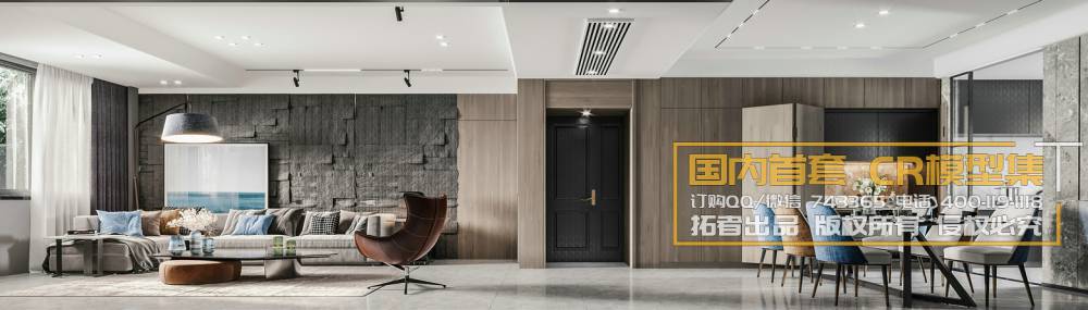 This 3D scene features a modern living room designed in a contemporary style. The interior is elegantly furnished with modern furniture and decor, creating a stylish and inviting space. Explore the details of the room layout and design elements in this visually appealing 3D scene.