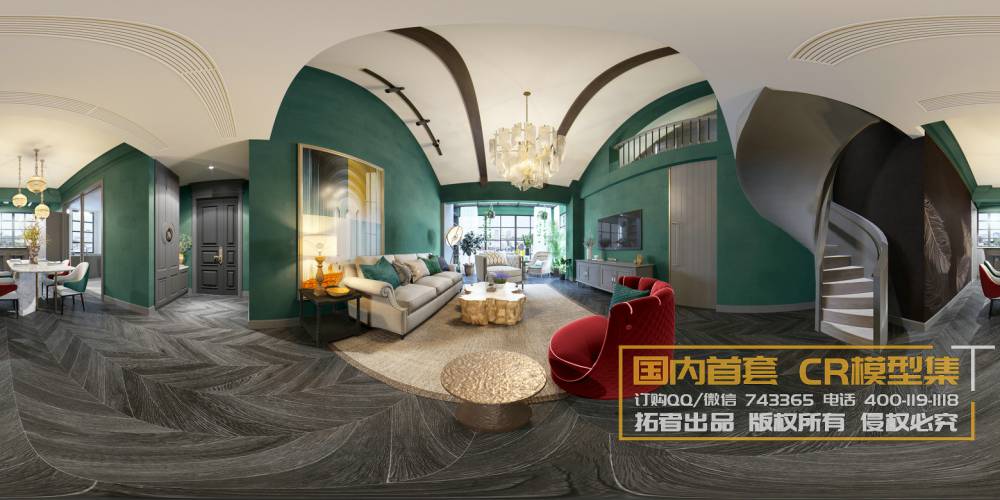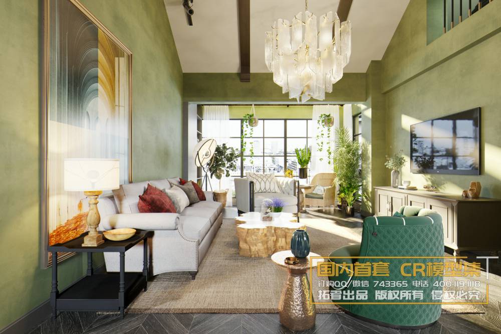 This 3D scene features a modern living room designed in a contemporary style. The room is elegantly furnished with modern furniture and stylish decor elements. Explore the interior design details and get inspired for your own living space.