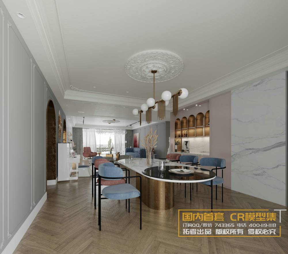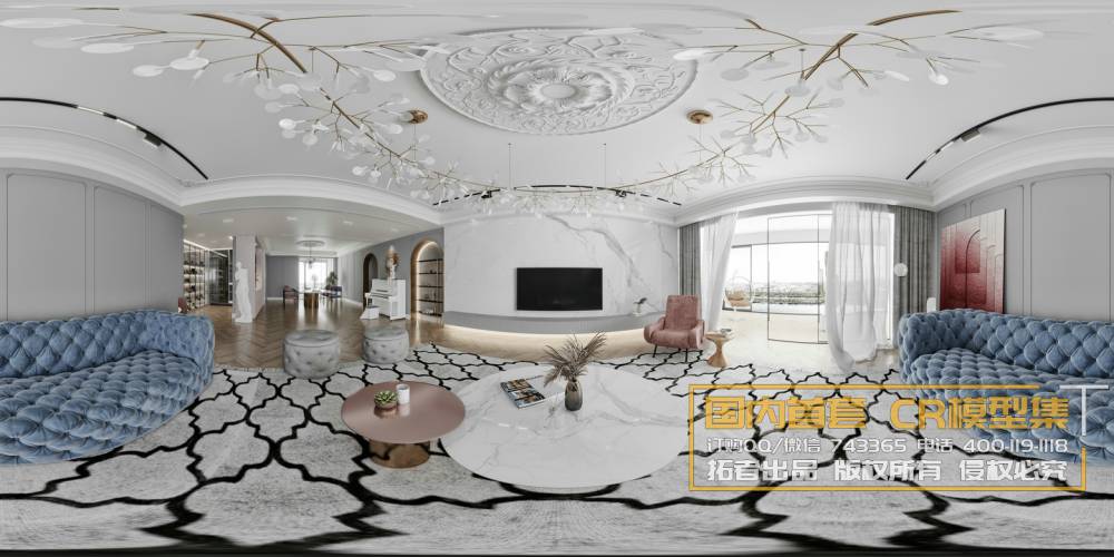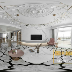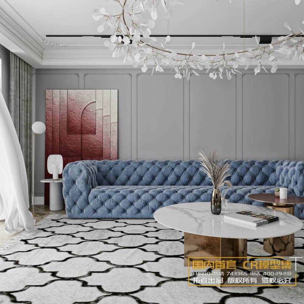 This 3D scene features a modern living room designed in a contemporary style. The space is elegantly furnished with modern furniture and decor, creating a harmonious blend of style and functionality. Explore this 3D scene to get inspiration for your own interior design projects.