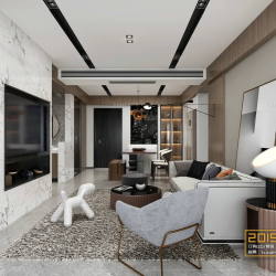 This 3D scene features a modern living room designed in a contemporary style. The room is elegantly furnished with stylish furniture and decor, creating a cozy and inviting atmosphere. Explore the intricate details of the interior design and get inspired for your own home decor projects.