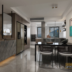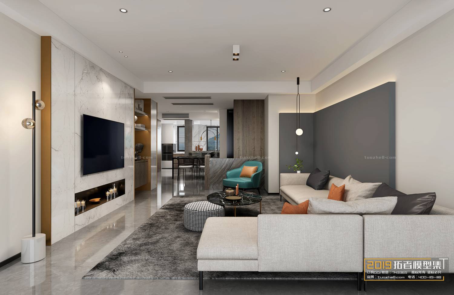 This 3D scene features a modern living room designed in a contemporary style. The room is furnished with stylish furniture and decor, creating a cozy and inviting atmosphere. Explore the details of the interior design and get inspired for your own home decor projects.