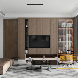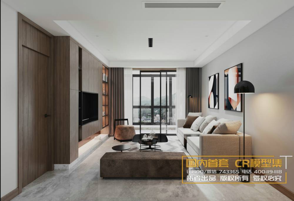 This 3D scene features a modern living room designed in a sleek and contemporary style. The room is furnished with stylish furniture and decor, creating a welcoming and elegant space. Explore the interior design details and get inspired for your own home decor projects.