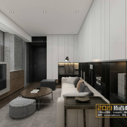 This 3D scene features a modern living room designed in a contemporary style. The interior design includes sleek furniture, stylish decor, and a harmonious color palette. Explore the perfect blend of modern aesthetics and functional living space in this captivating 3D rendering.