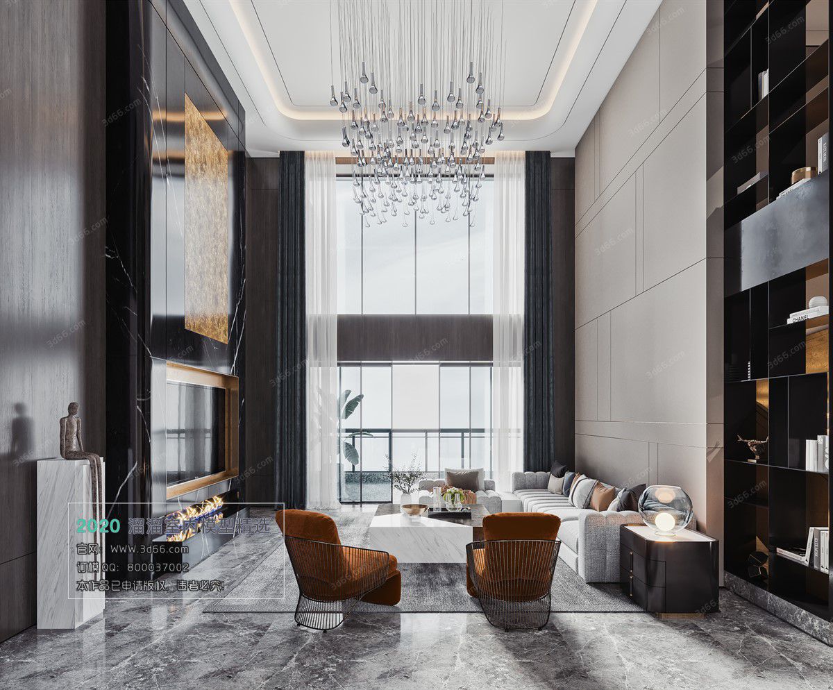 This 3D scene model features a modern living room setup with Vray rendering. The design includes contemporary furniture and interior elements, creating a stylish and inviting space. Perfect for architectural visualization and interior design projects.