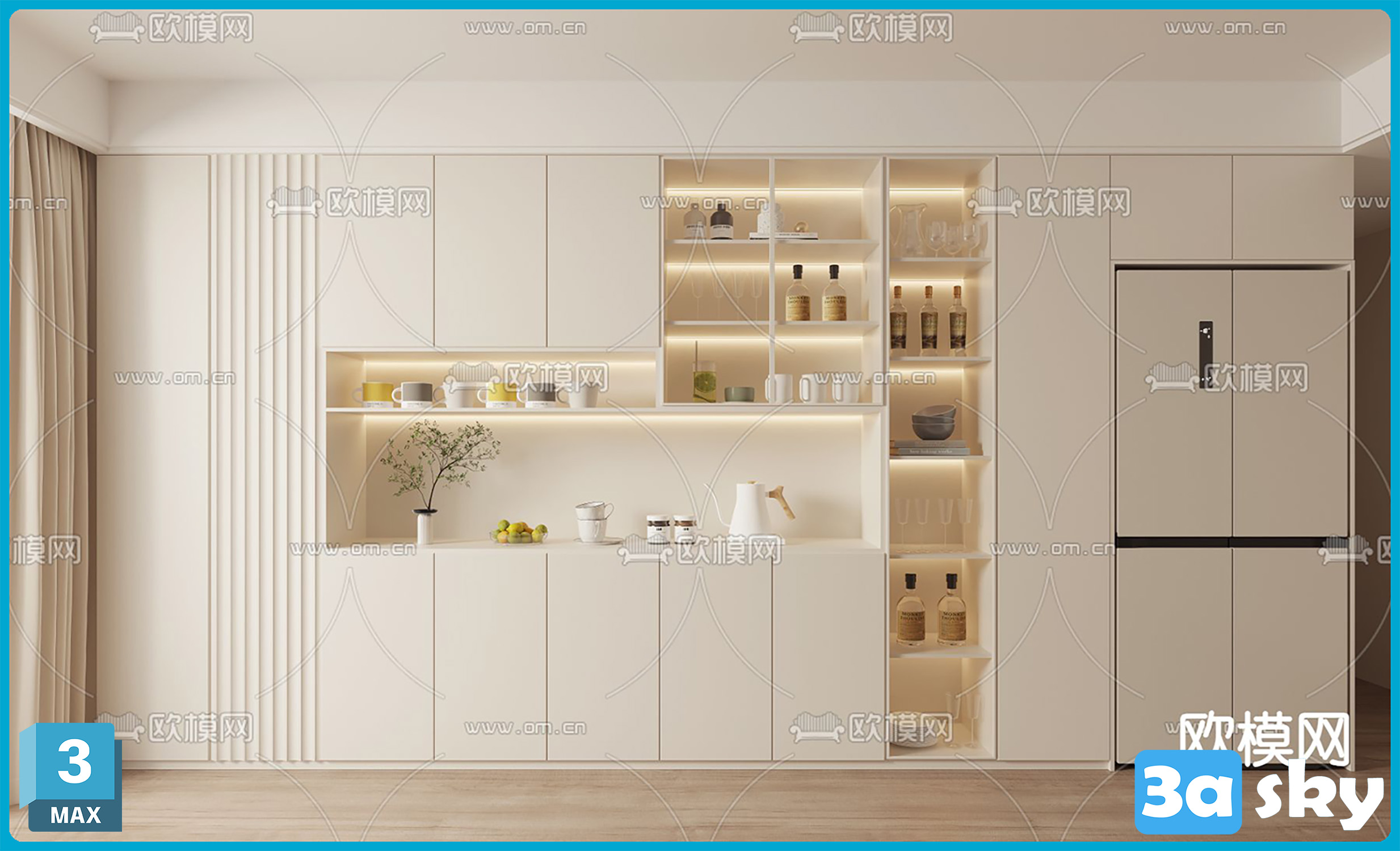 V_CR70奶油风酒柜3d模型ID-14268066.zip