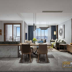 This 3D scene showcases a modern living room interior design with a contemporary style. The room features stylish furniture and decor, creating a cozy and inviting space. Explore the layout and design elements in this preview image.