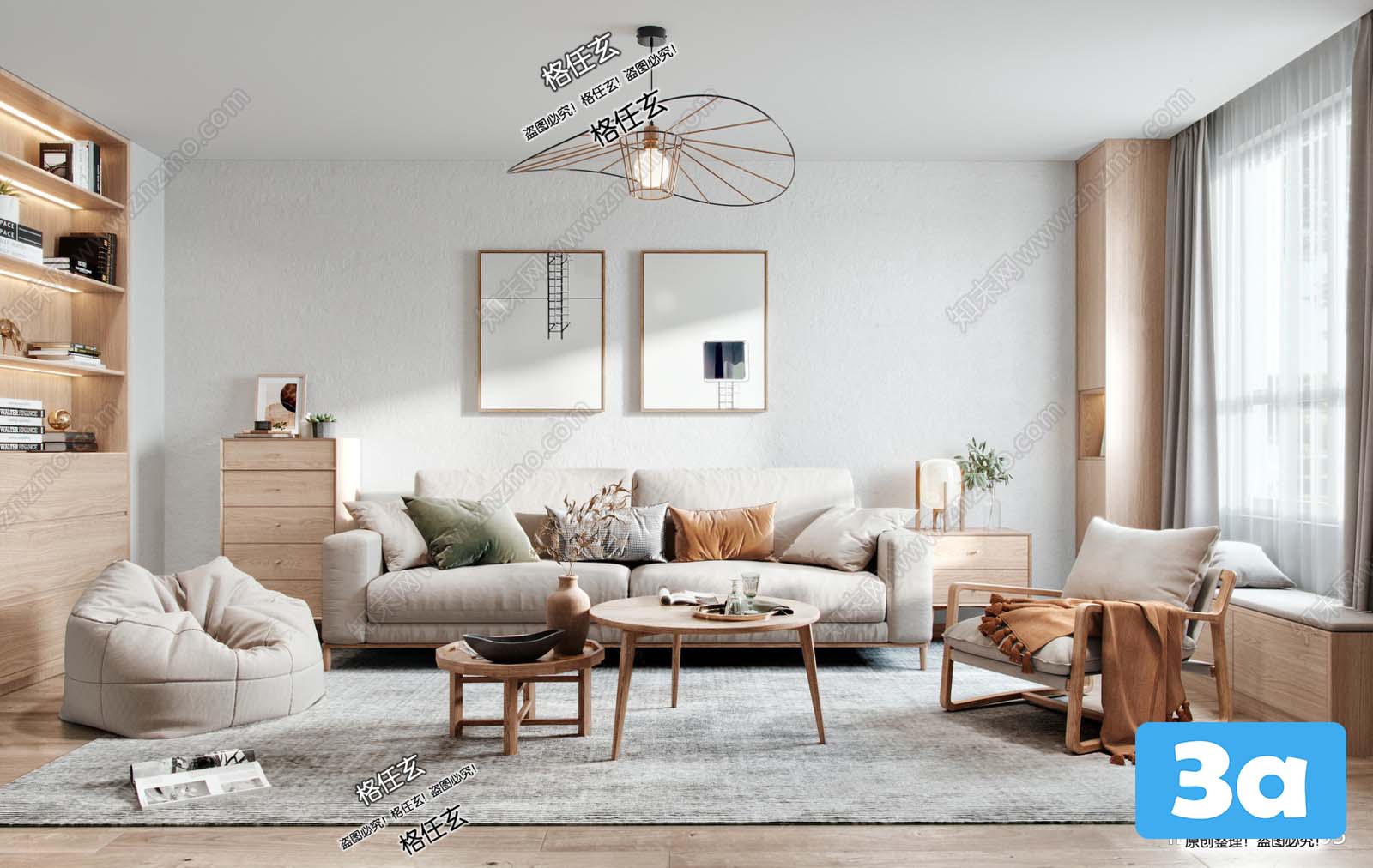 This 3D scene features a modern living room created in SketchUp. The design showcases contemporary interior elements including furniture and decor. Explore the detailed layout and design of this stylish living space.