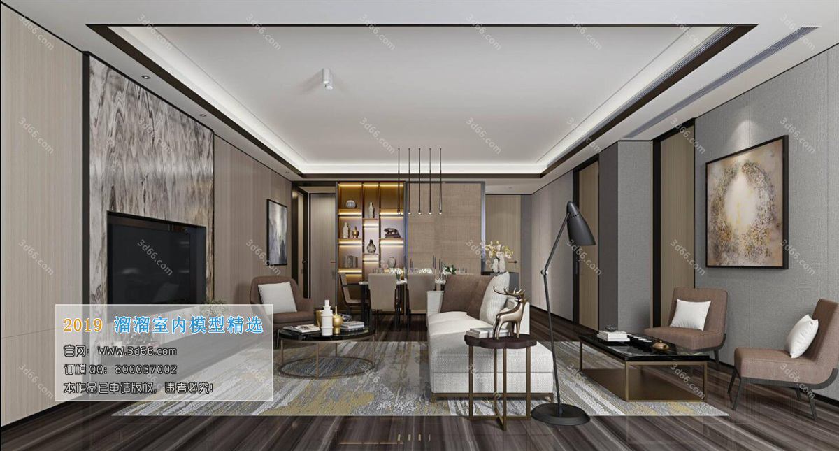 This 3D scene showcases a modern living room space with contemporary design elements. The room features a sleek and stylish interior, with modern furniture and decor. Explore the modern style and layout of this living room space in detail.