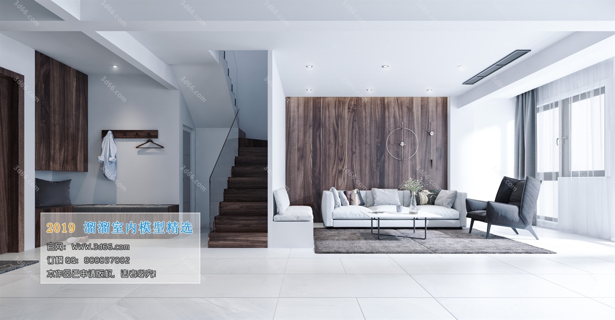 This 3D scene showcases a modern living room space with contemporary design elements. The room features modern furniture, stylish decor, and a sleek layout. Explore the modern style and interior design of this living room space in detail.