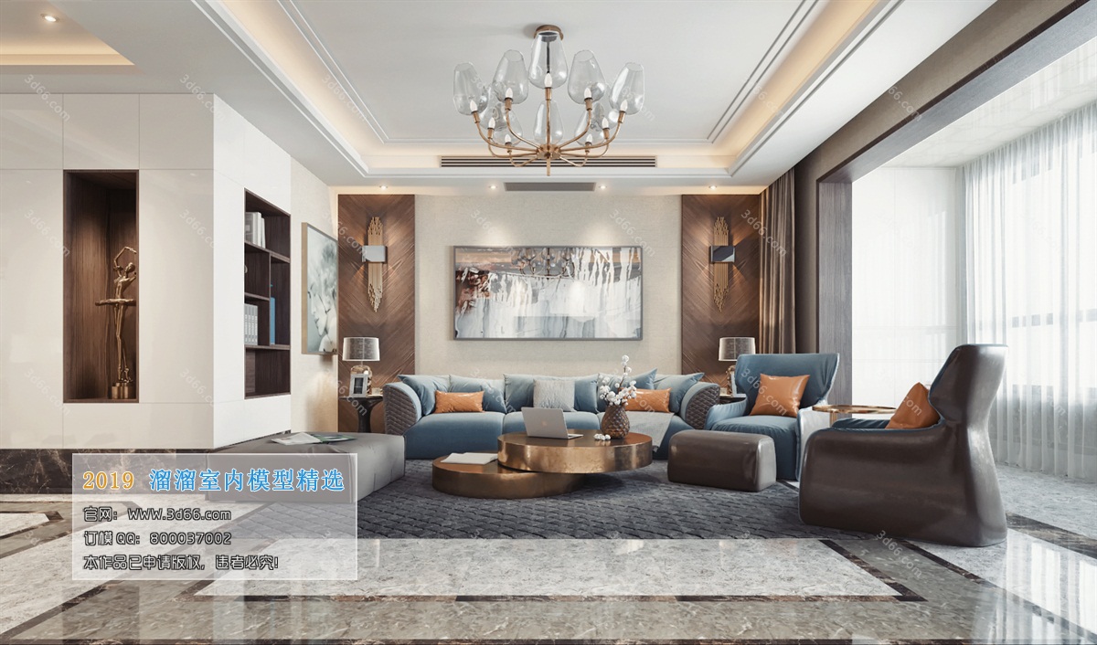 This 3D scene showcases a modern living room space designed in a stylish and contemporary manner. The interior features modern furniture, elegant decor, and a cozy ambiance. Explore the intricate details of the room and get inspired for your own interior design projects.