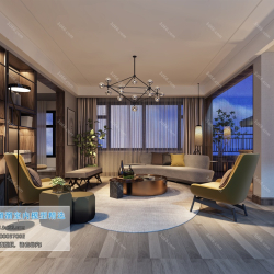 This 3D scene showcases a modern living room space designed in a contemporary style. The room features sleek furniture, clean lines, and a minimalist aesthetic. Explore the details of this interior design concept and get inspired for your own living space projects.