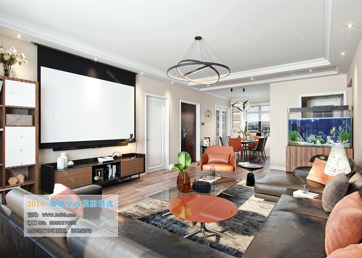 This 3D scene showcases a modern living room space designed in a contemporary style. The room features sleek furniture, elegant decor, and a harmonious color palette. Explore the details of this interior design to gather inspiration for your own home decor projects.