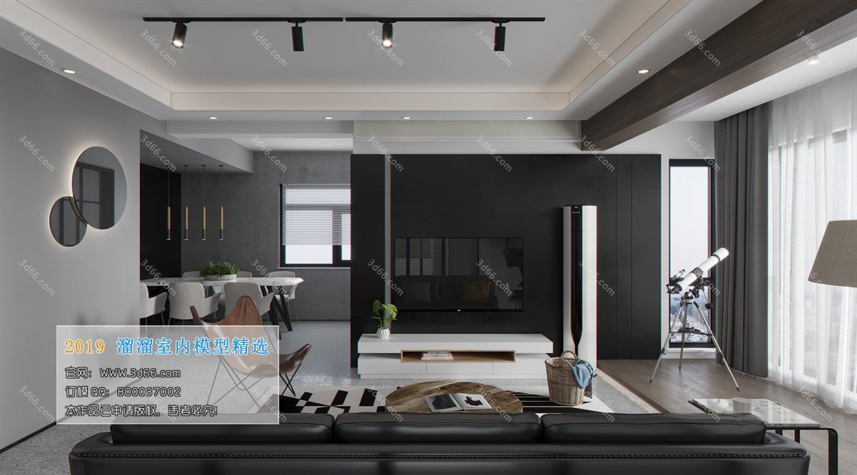 This 3D scene showcases a modern living room space designed in a contemporary style. The interior features sleek furniture, clean lines, and a harmonious color palette. Explore this preview to get inspiration for your own interior design projects.