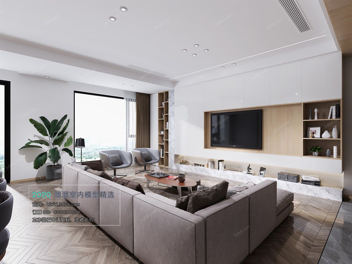 This 3D scene features a modern living room design rendered using Vray. The interior includes contemporary furniture and decor elements, creating a stylish and inviting space. Perfect for architectural visualization and interior design inspiration.