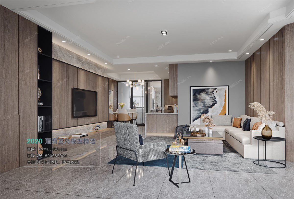 This 3D scene showcases a modern living room design rendered using Vray. The space features contemporary furniture and a stylish interior layout. Explore the details of this Vray model 084 preview to get inspiration for your own design projects.