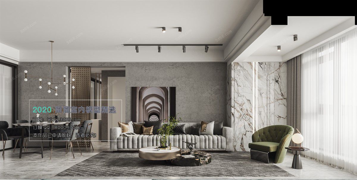 This is a preview image of a modern living room Vray model 105. The design features contemporary furniture and interior styling, showcasing a blend of modern aesthetics and functionality. Explore this 3D scene to get inspiration for your own interior design projects.
