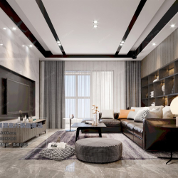 This 3D scene showcases a modern living room design with Vray model 125. The interior features contemporary furniture and a stylish layout, perfect for those looking for inspiration in interior design. Explore this visually appealing living space and get ideas for your own projects.
