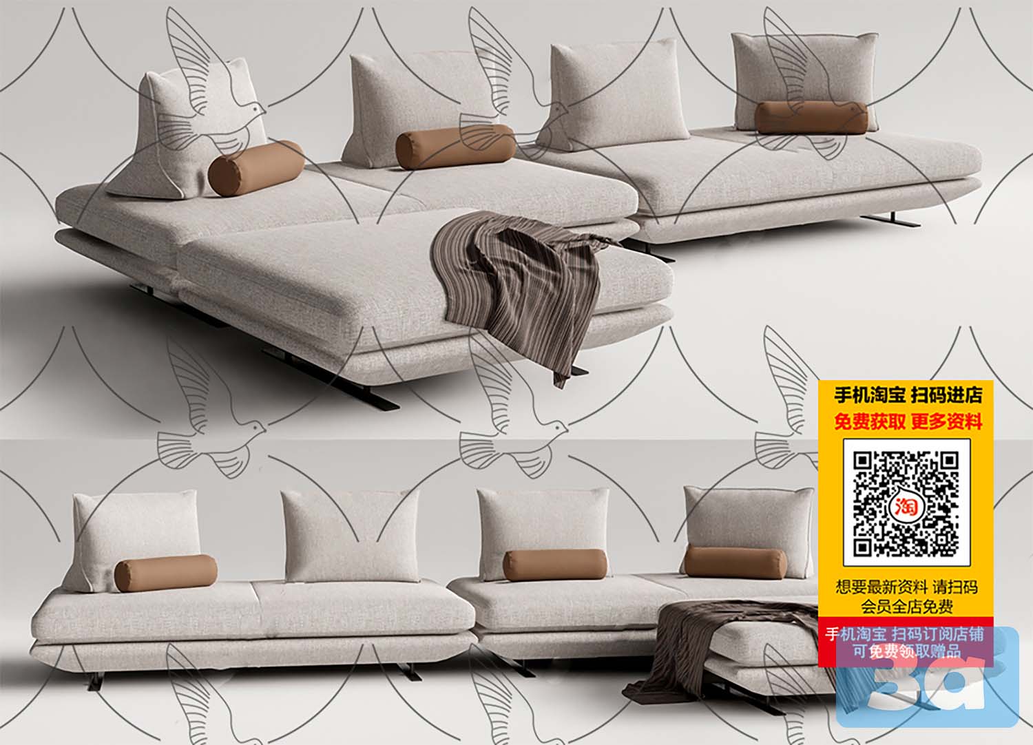 This 3D model features a modern sofa designed for interior design projects. The SketchUp file is available for free download. Add this stylish furniture piece to your living room or home decor projects.
