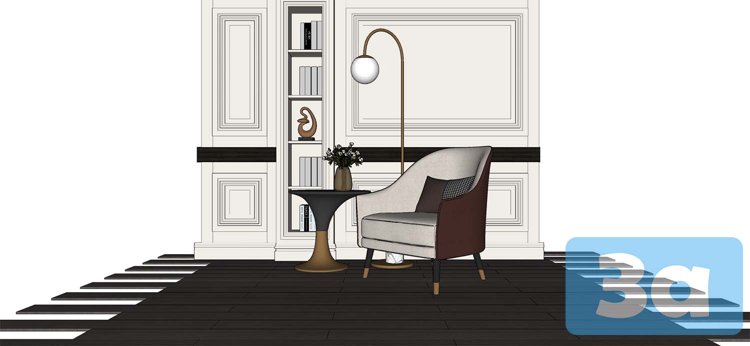 This 3D model features a modern sofa designed for interior design projects. The SketchUp furniture file is available for free download. Enhance your living room or home decor with this stylish piece of furniture.