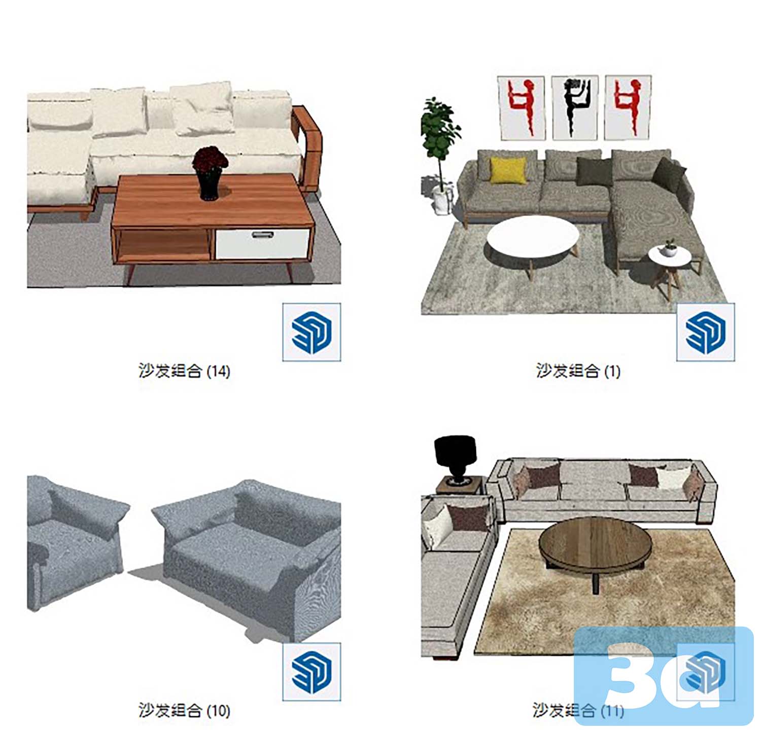 This Sketchup furniture model features a modern sofa design, perfect for interior design projects. The 3D model is available for download and can be used in various design applications.