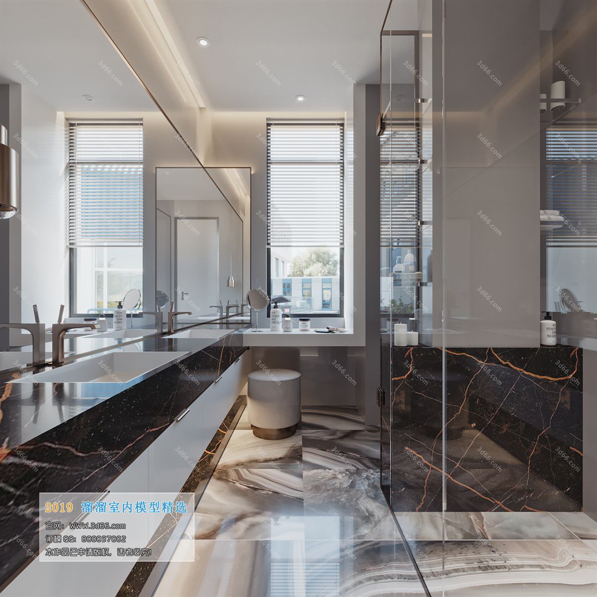 This 3D scene showcases a modern style bathroom space with elegant design elements. The interior features a contemporary layout with a focus on functionality and aesthetics. Explore the details of this 3D model to get inspiration for your own interior design projects.