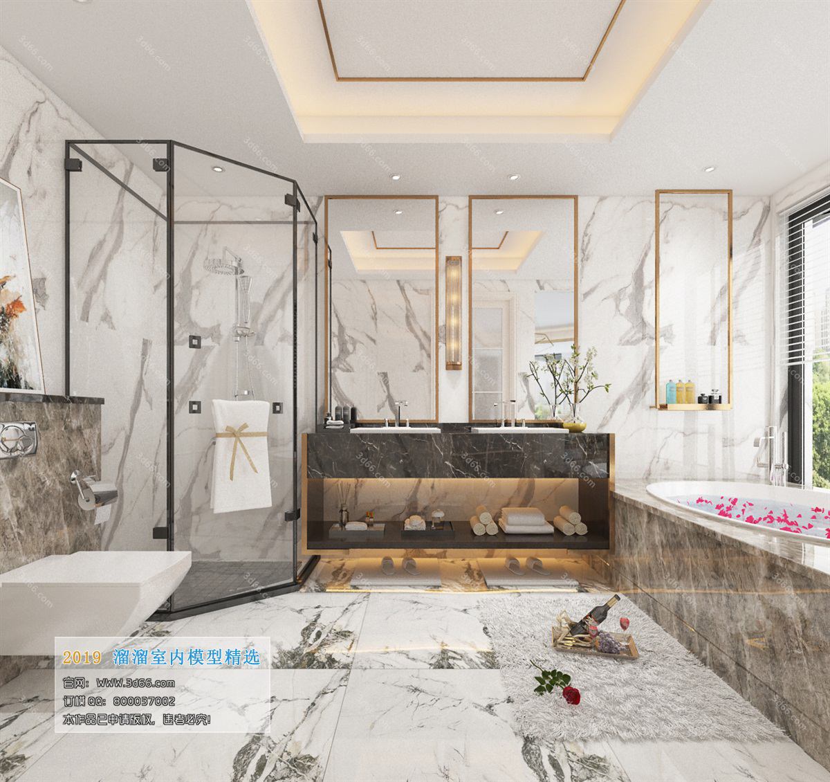 This 3D scene showcases a modern style bathroom space with a contemporary design. The interior layout features sleek lines, modern fixtures, and a clean aesthetic. Explore the details of this 3D model created in 3DS MAX/3D SCENES for inspiration and design ideas.