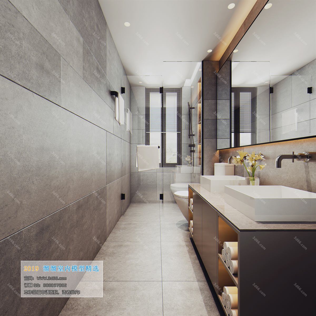 This 3D scene showcases a modern style bathroom space designed with elegance and functionality in mind. The interior design features contemporary elements and a clean aesthetic. Explore the layout, lighting, and details of this 3D model to gather inspiration for your own projects.
