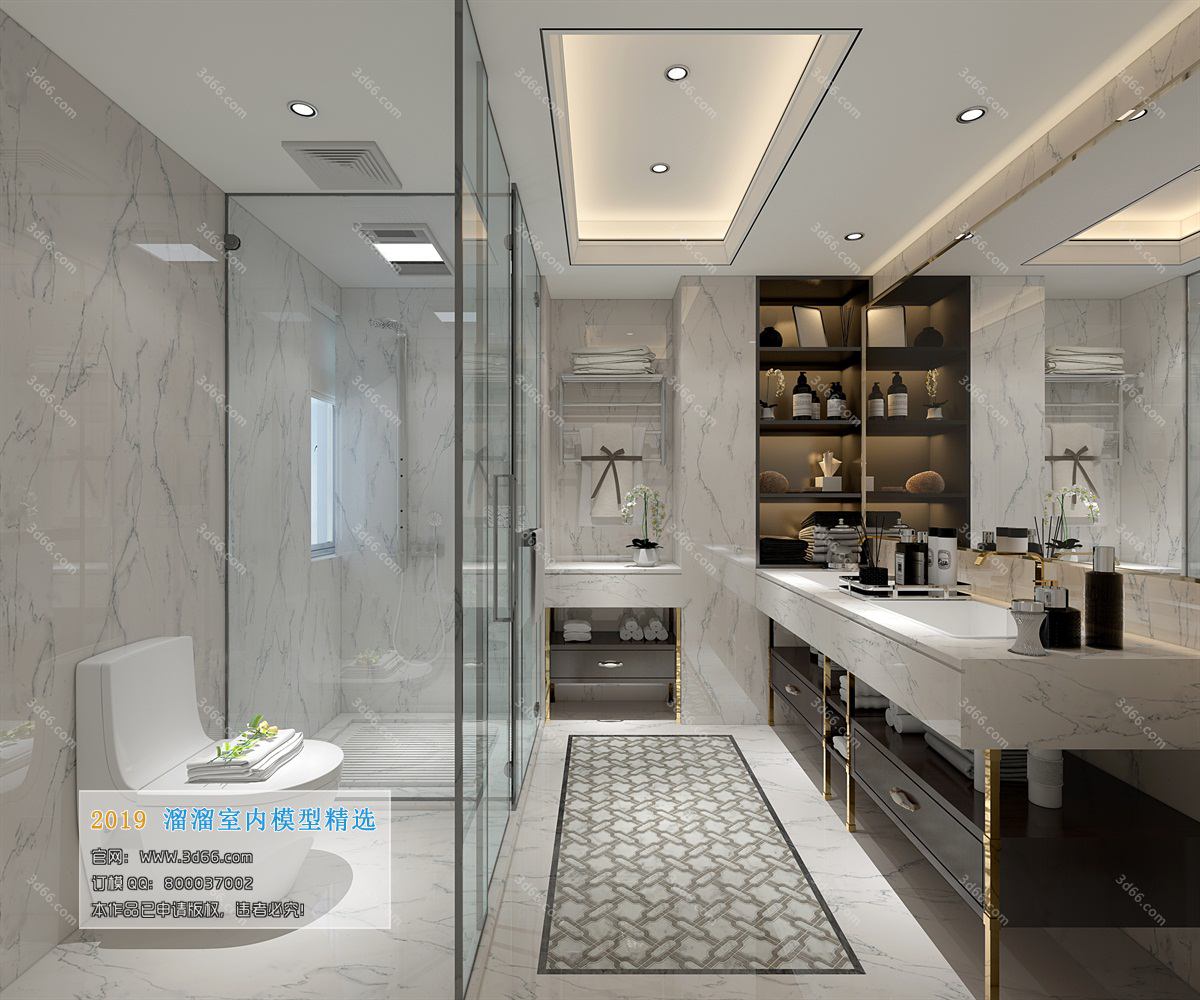 This 3D scene showcases a modern style bathroom space with elegant design elements. The interior features contemporary fixtures and a clean layout. Explore the details of this 3D model to get inspiration for your own interior design projects.