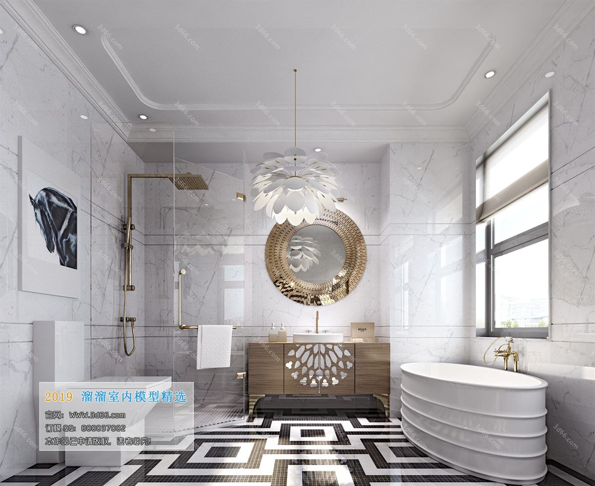 This 3D scene showcases a modern style bathroom space with contemporary design elements. The scene is created in 3DS MAX software, highlighting the intricate details and layout of the interior space. Explore the modern aesthetics and functional layout of this bathroom design.