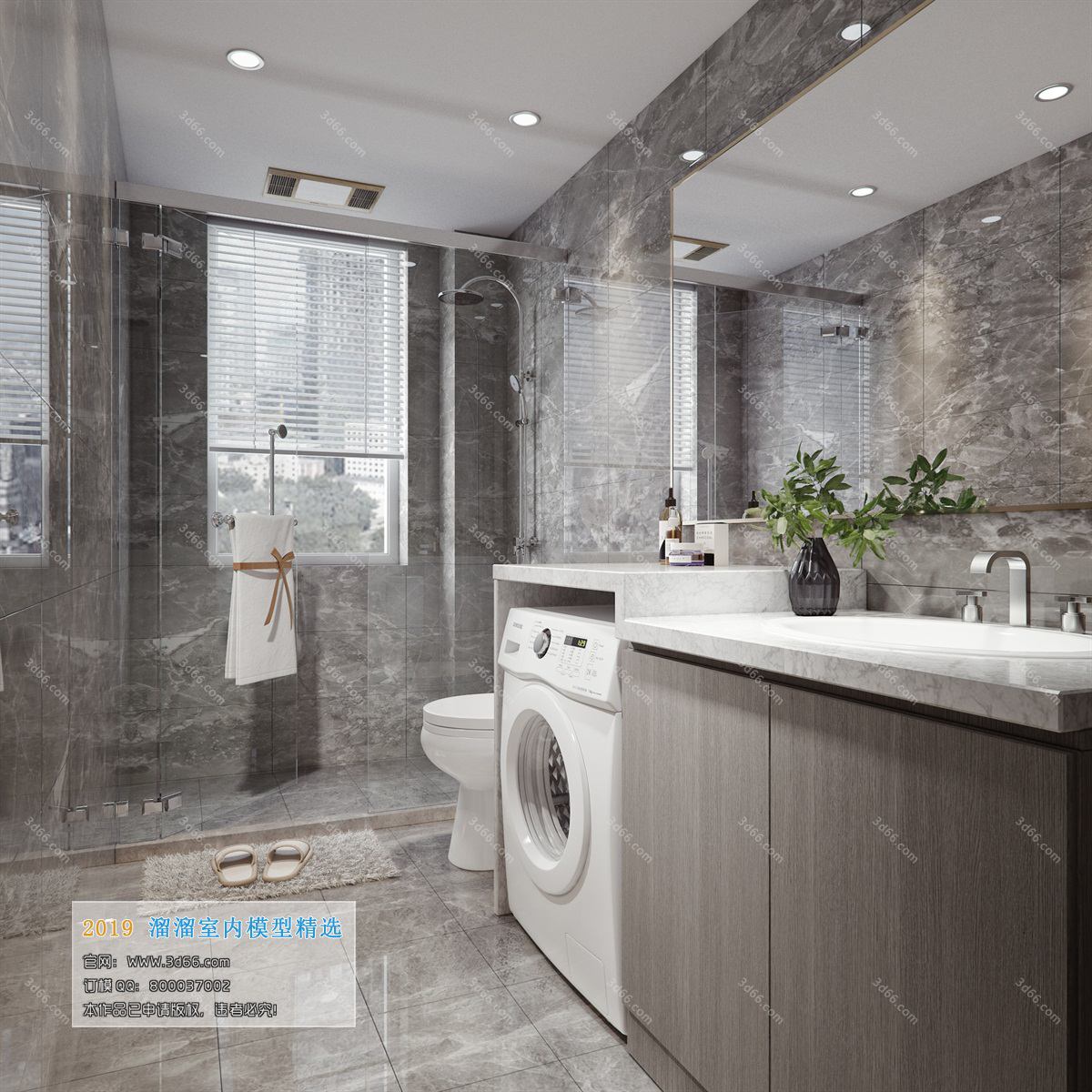 This 3D scene showcases a modern style bathroom space designed in a contemporary manner. The interior design features sleek lines, modern fixtures, and a clean aesthetic. Explore the details of this 3D scene to gather inspiration for your own design projects.