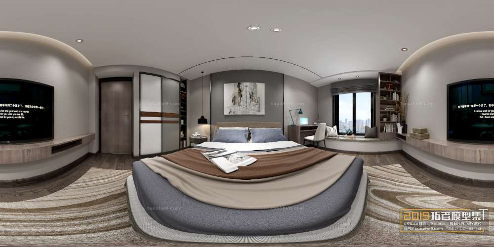 This 3D scene showcases a modern style bedroom, designed with contemporary elements and a sleek aesthetic. The interior design features a blend of functionality and style, creating a visually appealing space. Explore the details and layout of this bedroom scene created in 3DS MAX.