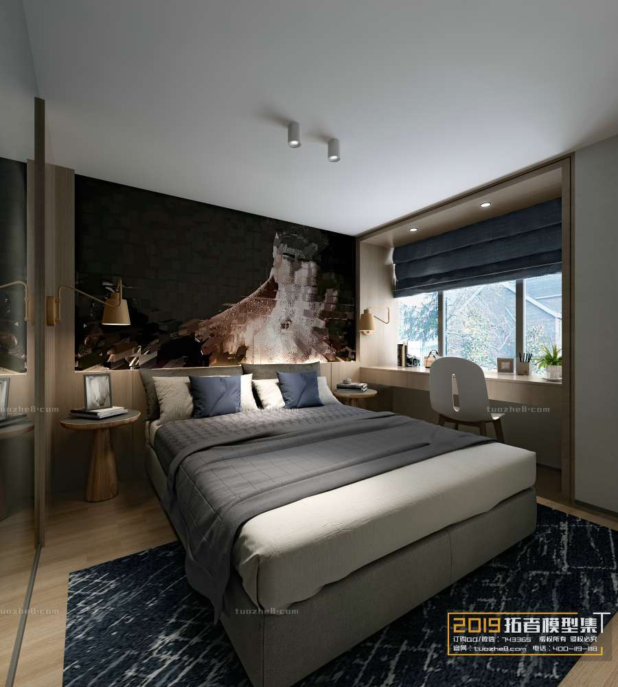 This 3D scene showcases a modern style bedroom designed in 3DS MAX. The room features contemporary furniture and a stylish layout, providing a glimpse into modern interior design trends.