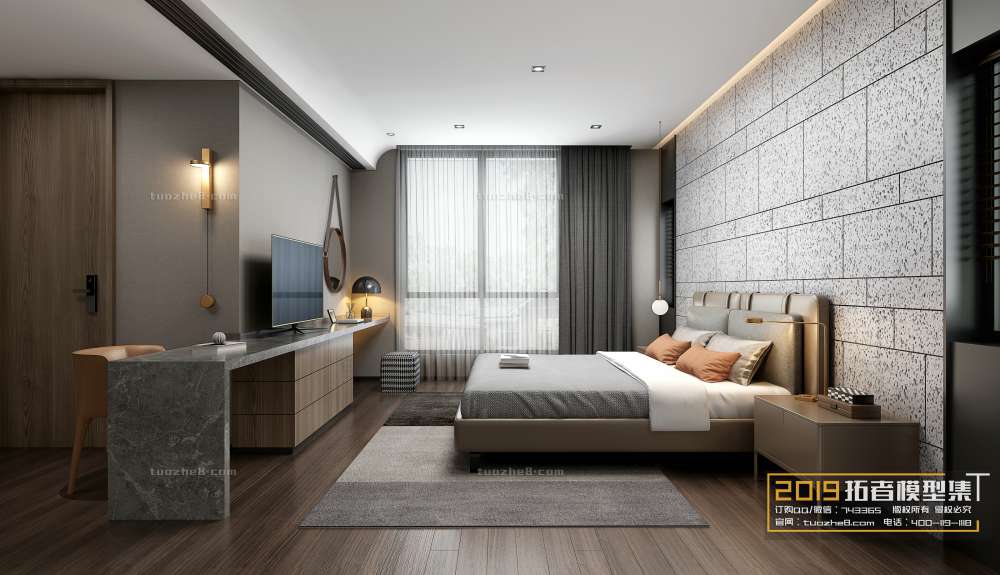 This 3D scene showcases a modern style bedroom with contemporary furniture and interior design elements. The room features a sleek and minimalist aesthetic, with a focus on clean lines and neutral colors. Explore this 3D scene to get inspiration for your own modern bedroom design projects.