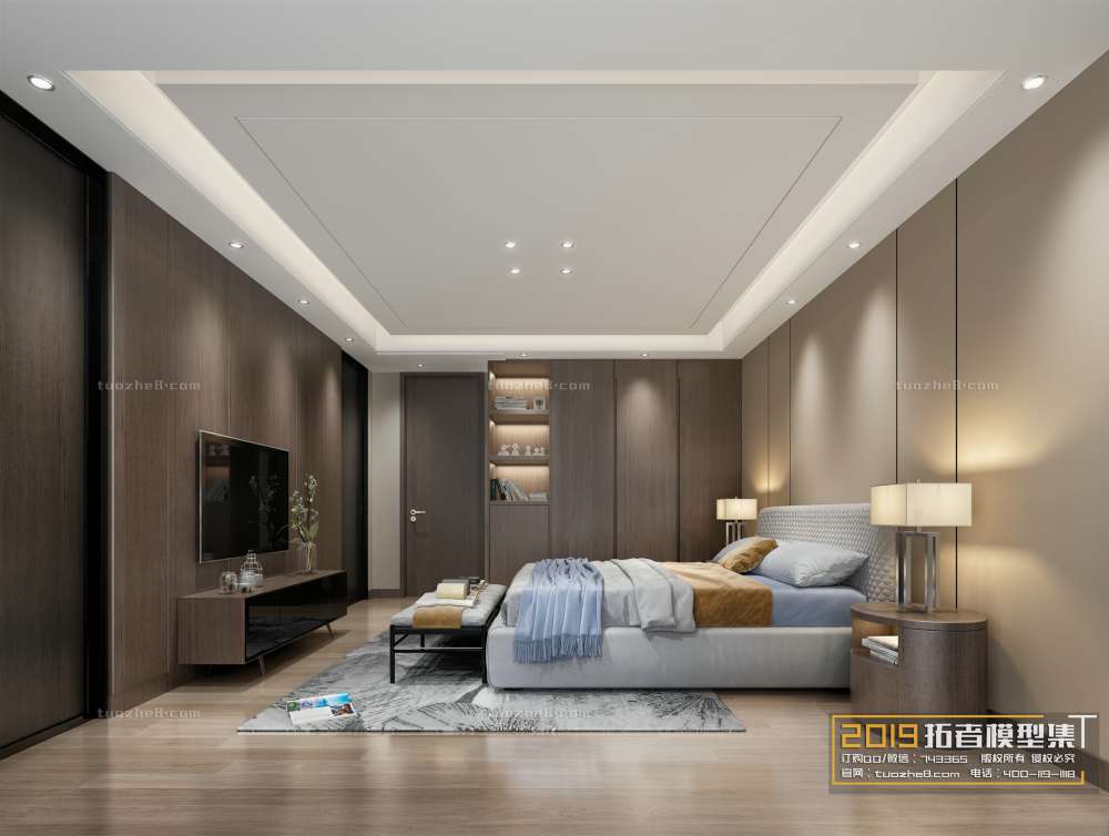This 3D scene showcases a modern style bedroom with contemporary furniture and interior design elements. The room features a sleek and elegant design, perfect for those looking for inspiration in modern home decor. Explore the details of this 3D model created in 3DS MAX and get ideas for your own interior design projects.