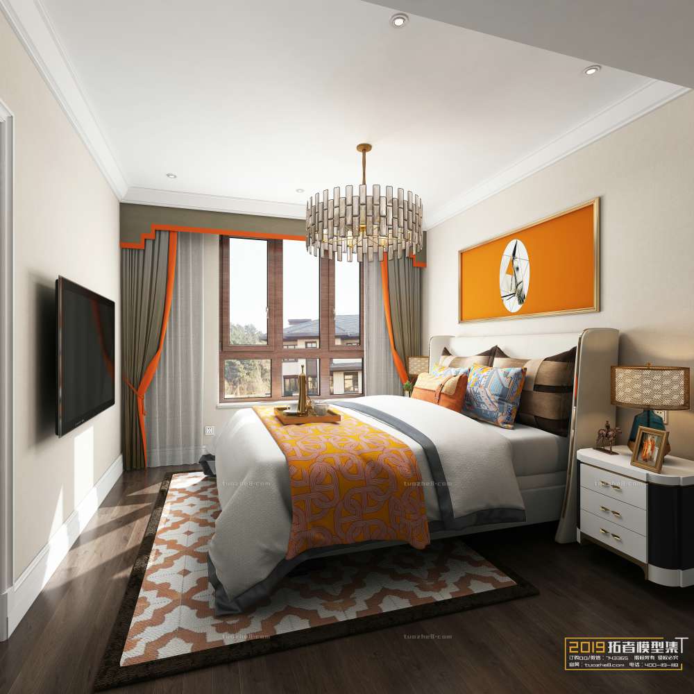This 3D scene showcases a modern style bedroom with contemporary furniture and interior design elements. The room is elegantly designed with a focus on simplicity and functionality. Explore the details of this 3D model created in 3DS MAX and get inspired for your own interior design projects.