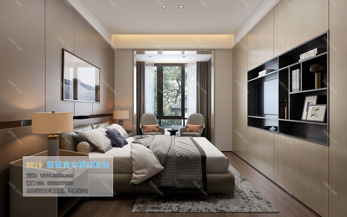This 3DS MAX/3D SCENES file showcases a modern style bedroom space with contemporary design elements. Explore the interior layout, furniture placement, and overall aesthetic of this 3D scene. Perfect for those looking for inspiration in interior design and architecture projects.