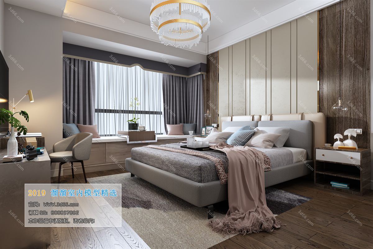 This 3D scene showcases a modern style bedroom space with contemporary interior design elements. The room features a sleek and stylish decor, creating a cozy and inviting atmosphere. Explore the details of this 3D model to inspire your own design projects.