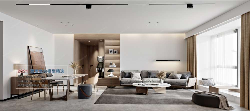 This 3D scene features a modern style Corona model, ideal for interior design projects. The design showcases contemporary furniture and a sleek aesthetic. Perfect for visualizing and planning interior spaces.