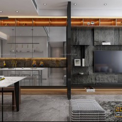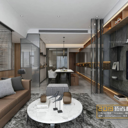 This 3D scene features a modern style living room with contemporary interior design elements. The room is elegantly decorated with a focus on modern aesthetics and functionality. Explore the details of the furniture, lighting, and overall layout to gather inspiration for your own interior design projects.